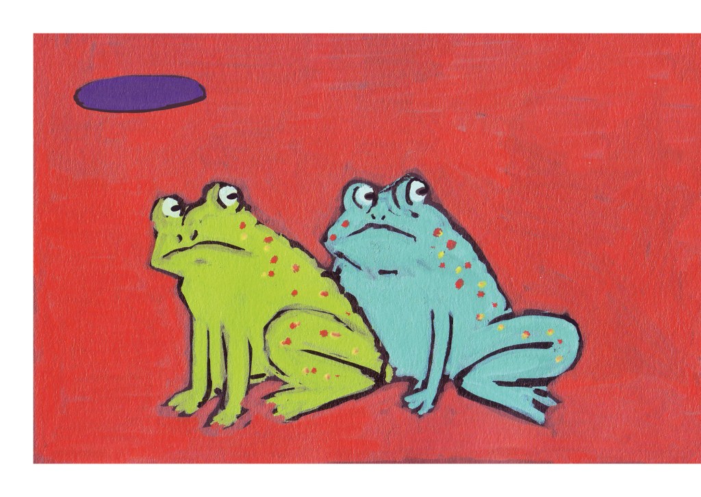 Drei von fünf fröhlichen Fröschen fallen in ein tiefes Loch und versuchen, wieder herauszukommen.